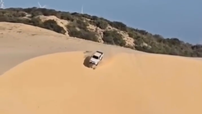 Apesar do susto, ninguém ficou gravemente ferido. A caminhonete, entretanto, precisou ser retirada da duna com auxílio de um reboque.