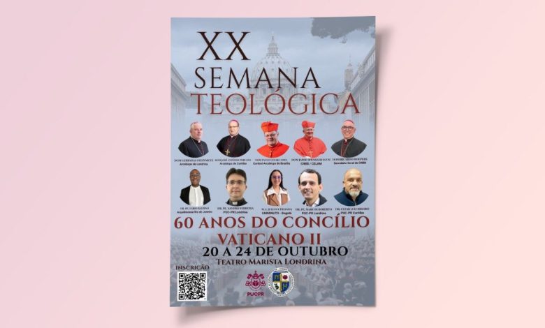 O curso de Teologia da PUC-PR – Câmpus Londrina, em parceria com o Centro Acadêmico São João Paulo II, promoverá, de 20 a 24 de outubro de 2025, a XX Semana Teológica. O evento, já tradicional na vida acadêmica do câmpus, celebra 20 anos de existência, coincidindo também com o aniversário de início do curso em Londrina. Para marcar esta ocasião especial, está sendo preparada uma edição inédita, que contará com dois horários alternativos: pela manhã, voltado a alunos, professores e demais interessados, e à noite, para paróquias e pastorais que não têm possibilidade de participação no período matutino.