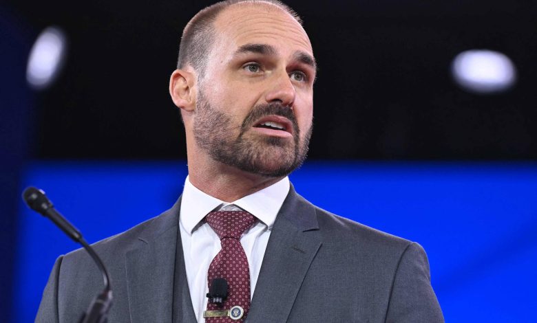 Eduardo viajou para os EUA em março, de onde comanda uma campanha para que o presidente americano, Donald Trump, determine punições a autoridades brasileiras, além de ter articulado o tarifaço contra produtos brasileiros, com o objetivo de livrar o pai da prisão.