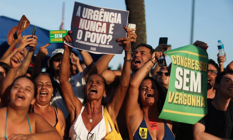 No dia seguinte (17) à noite, os deputados aprovaram o requerimento de urgência para a anistia aos condenados pela tentativa de golpe de 8 de Janeiro. Na esteira dessas decisões, iniciou-se uma mobilização nas redes sociais por frentes de esquerda para convocar manifestações contra a anistia e contra a PEC da Blindagem.