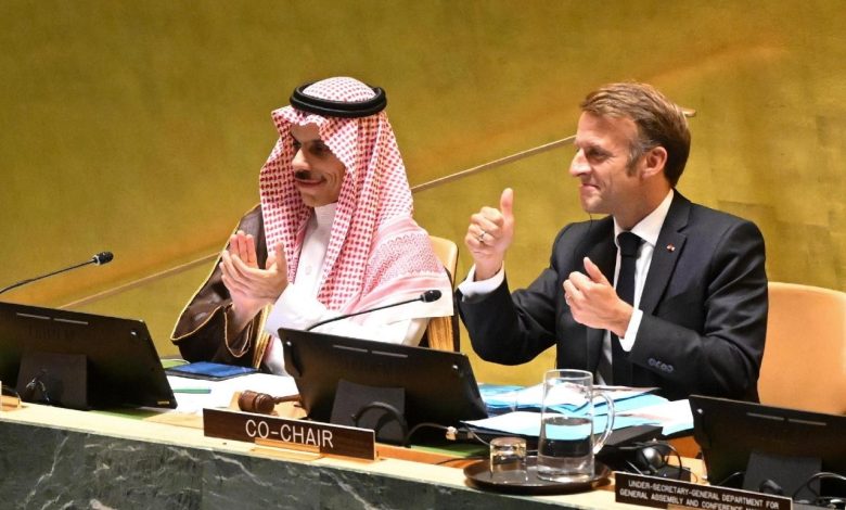 Macron também aproveitou a tribuna das Nações Unidas para delinear um plano de paz para a guerra em Gaza com Israel. Para obter o maior apoio possível, a proposta exclui o Hamas de qualquer papel no pós-conflito e prevê uma administração no território liderada pela Autoridade Nacional Palestina. O presidente palestino Mahmoud Abbas discursou por videoconferência, após os Estados Unidos terem negado o visto para que ele comparecesse à Assembleia Geral da ONU.