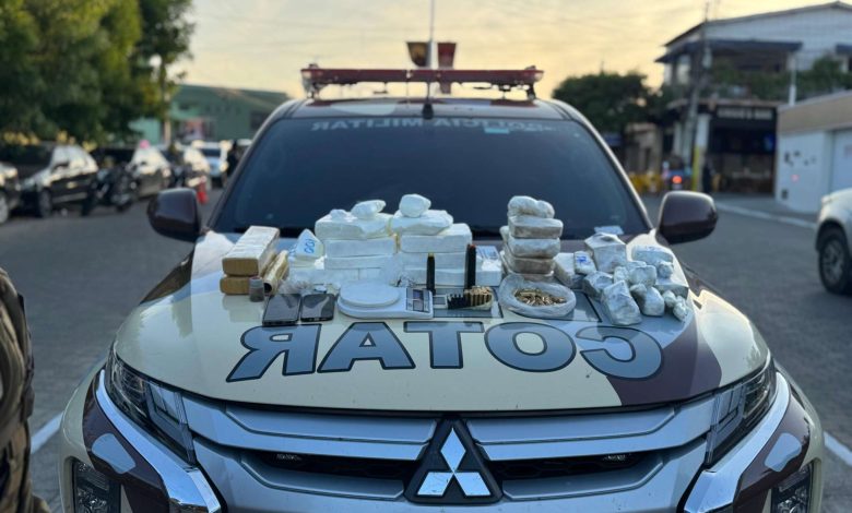 A Polícia Militar do Ceará (PMCE), por meio do Comando Tático Rural (Cotar) do Batalhão Especializado de Policiamento do Interior (BEPI), prendeu em flagrante dois suspeitos e apreendeu mais de 19 quilos de drogas, munições de diversos calibres e materiais ilícitos. A ocorrência aconteceu na tarde deste sábado (27), durante ação na BR-020 e no Centro de Canindé, no Sertão Central.