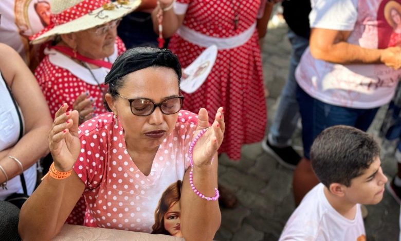 As ruas da cidade foram tomadas por fé, cores e emoção. Casas e praças foram adornadas de vermelho e branco, em alusão justamente ao vestido usado pela “Heroína da Castidade”, símbolo da pureza e da resistência cristã. Desde as primeiras horas da manhã da sexta-feira (24/10), romarias e caravanas chegaram em oração, reafirmando a devoção à primeira Beata do Ceará, mártir da pureza e modelo de fé para o povo do Cariri, como explicou o Pe. Idemário da Silva Muniz, pároco da Paróquia Sra. Sant’Ana: “hoje nós percebemos esse grande fluxo de devotos e romeiros que aqui vêm justamente por causa da sua fidelidade e ousadia em lutar contra o mal e contra o pecado: preferir a morte a não pecar, assim como ela fez. É de fato sinal de santidade que, desde aquela época, há 84 anos exatamente, temos essa devoção à Beata Benigna aqui em Santana do Cariri e também na região sul do Ceará”.