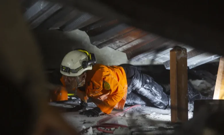 Segundo a Agência Nacional de Gestão de Desastres, há sinais de que ao menos seis pessoas ainda resistem em uma das áreas dos escombros. A utilização de maquinário pesado, embora disponível, foi descartada por enquanto devido ao risco de provocar novos desabamentos.