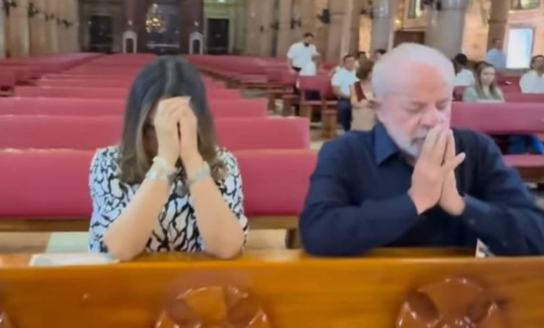 A primeira-dama, Rosângela Lula da Silva, a Janja, publicou nesta sexta-feira (3) um vídeo em que aparece rezando com o presidente Lula (PT) na Basílica de Nossa Senhora de Nazaré, em Belém (PA).