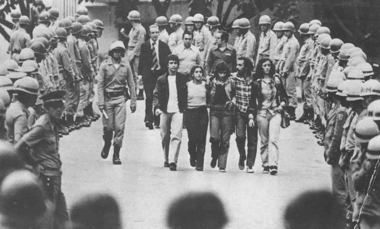Na época, a PUC (Pontifícia Universidade Católica) amanheceu cercada por agentes do governo, mas cerca de 70 alunos conseguiram realizar ali uma sessão secreta, no final da manhã, na qual foi eleito um comitê para retomar as atividades da entidade estudantil.