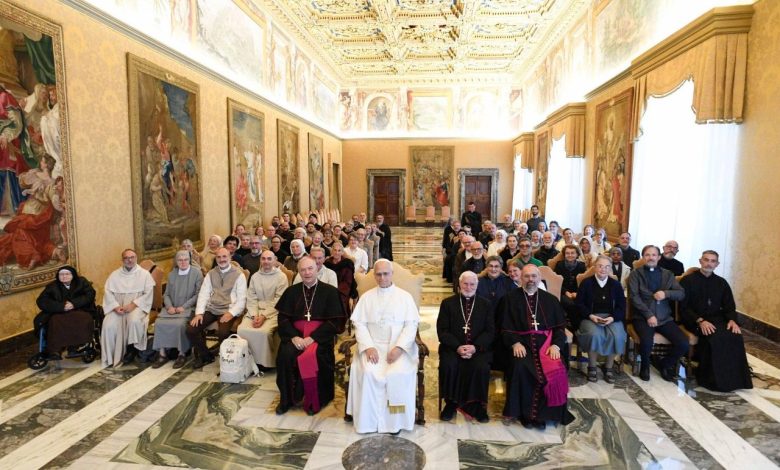 Leão explica aos presentes que enquanto permanecerem fiéis à herança recebida dos Padres da Igreja na guarda da Palavra, através da lectio divina e do serviço do louvor e da intercessão com a oração dos salmos, serão ao mesmo tempo “chamados a interpretar os novos desafios espirituais com a criatividade do Espírito Santo”. E que é o Paráclito, de fato, que os abre ao diálogo com todos os que buscam sentido e verdade, educando-os a compartilhar e orientar sua busca espiritual, muitas vezes confusa. “Todos vocês podem estimular o próximo a voltar para dentro de si mesmo, a reencontrar o centro de gravidade do coração, como nos ensinou o Papa Francisco na Encíclica Dilexit nos”. E lá, no fundo da alma, cada um poderá descobrir o fogo do desejo de Deus que arde e nunca se apaga.