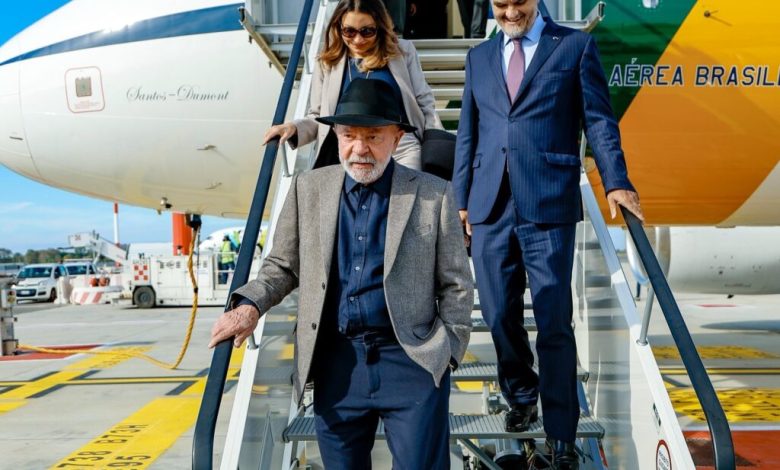 Lula chega a Roma para reunião com o papa Leão XIV nesta segunda (13).