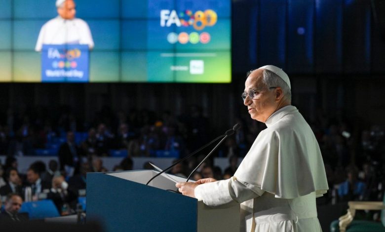 Leão XIV afirmou que, oitenta anos após a fundação da FAO, a consciência da humanidade deve novamente se deixar interpelar pelo drama da fome e da desnutrição, lembrando que esse problema não é responsabilidade exclusiva de governos, empresários ou líderes políticos. “Quem padece de fome não é um estranho. É meu irmão, e devo ajudá-lo sem demora”, declarou. Segundo o Papa, “vencer a fome é uma condição essencial para a paz e o desenvolvimento integral das nações”.