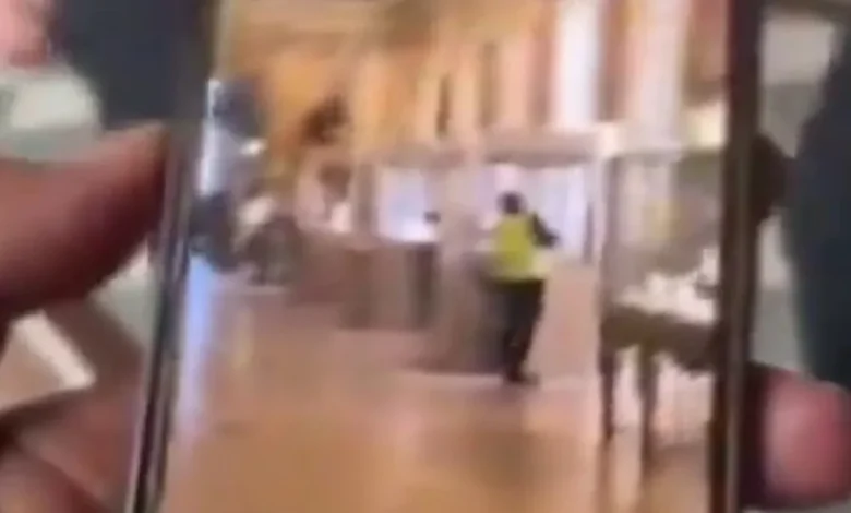 O vídeo mostra um dos ladrões, vestido como operário e usando um colete refletivo amarelo, quebrando uma vitrine e retirando as joias, enquanto visitantes caminham próximos, aparentemente sem perceber o que acontecia. O crime ocorreu em plena luz do dia, entre 9h30 e 9h40 (horário local).