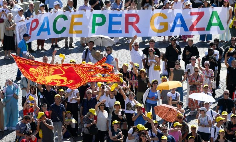 Já da janela do apartamento pontifício, depois de rezar a oração mariana do Angelus e antes de saudar, entre outros, os peregrinos da Diocese de Mindelo, em Cabo Verde, Angola e da cidade do Porto presentes na Praça, o Pontífice dirigiu-se, em primeiro lugar, “aos representantes de diversas associações católicas empenhadas na solidariedade com o povo da Faixa de Gaza”: