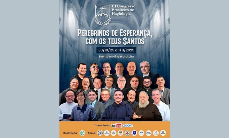 Em sintonia com o Jubileu de 2025 anos do nascimento de Jesus, a Academia Brasileira de Hagiologia (ABRHAGI) realiza, de 30 de outubro a 1º de novembro, a 3ª edição do Congresso Brasileiro de Hagiologia. Sob o tema “Peregrinos de Esperança, com os teus Santos”, o evento, online e gratuito, oferece palestras que se relacionam com a temática, apresentadas por estudiosos leigos e religiosos. As inscrições, que garantem certificados aos participantes, estão abertas e podem ser feitas até o fim do mês, em abrhagi.eventosanto.com.br.