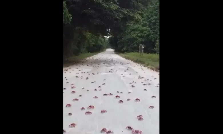 Milhares de caranguejos-vermelhos iniciaram sua migração anual na Ilha Christmas, território australiano no Oceano Índico. O fenômeno, que transforma as paisagens da ilha em um tapete vermelho em movimento, começou com a chegada das chuvas de verão no hemisfério sul.