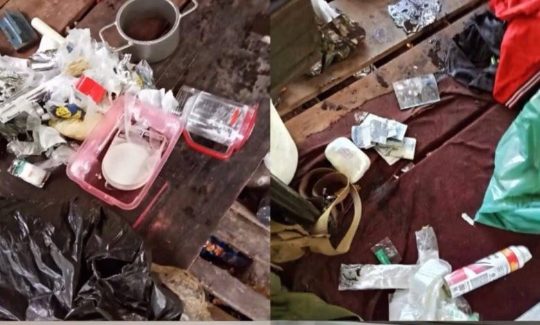 Também foram localizados um rádio comunicador, dinheiro trocado, um pó branco semelhante à cocaína e um gerador de energia — o que indica possíveis atividades noturnas no local.