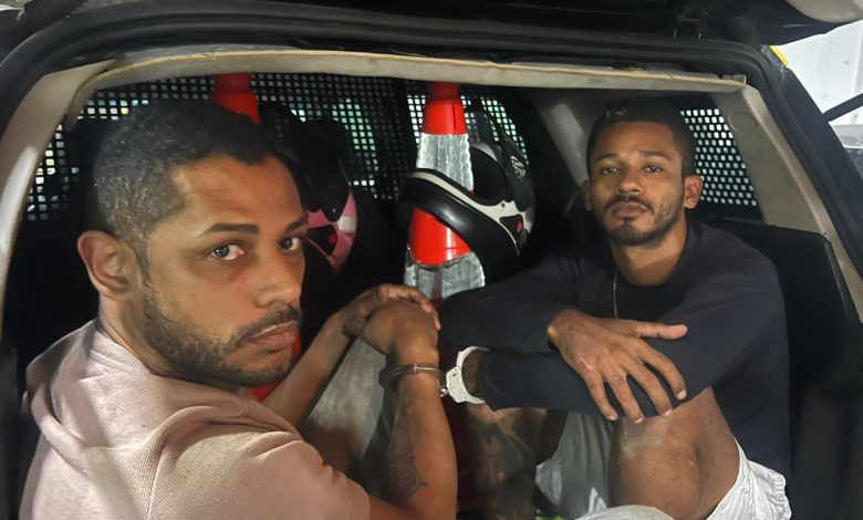 Com a dupla, os policiais apreenderam um revólver calibre 38, um jammer; aparelho usado para bloquear sinais de rastreadores, além de celulares e um tablet.