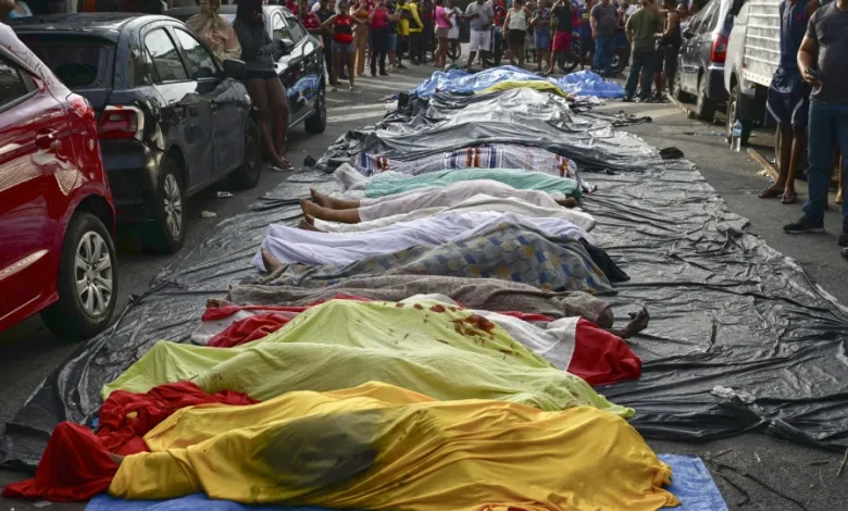 Moradores do Complexo da Penha, na zona norte do Rio de Janeiro, levaram na madrugada desta quarta-feira (29) mais de 50 corpos para a praça São Lucas, na comunidade.