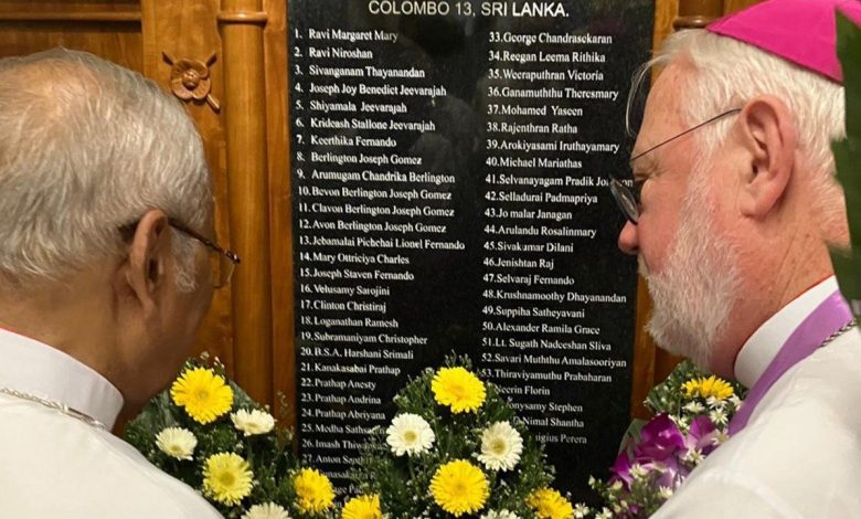 Depois da visita aos locais dos atentados, dom gallagher presidiu uma Missa de Ação de Graças na Catedral Santa Lúcia, em Colombo, pelo 50° aniversário das relações diplomáticas entre os dois Estados.