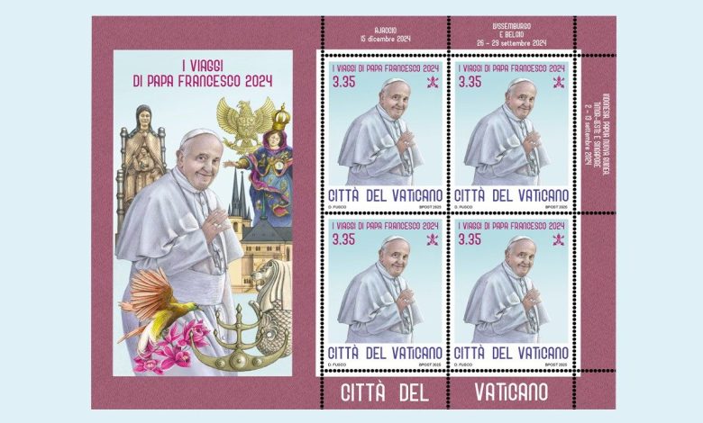 Com a série intitulada “As viagens do Papa Francisco pelo mundo, em 2024”, os Correios e a Filatelia vaticana pretendem celebrar a missão universal do Pontífice, que faleceu em 21 de abril deste ano, peregrino da paz e testemunha da fraternidade entre os povos. Os selos comemoram as peregrinações internacionais de 2024, desde a Ásia e Oceania, a mais longa de seu pontificado, durante a qual Francisco visitou Indonésia, Papua Nova Guiné, Timor-Leste e Singapura, como também Luxemburgo e Bélgica, culminando com sua última viagem a Ajaccio (Córsega). A série de selos insere-se na coleção tradicional dedicada às “Viagens do Papa Francisco pelo Mundo”, que, desde 2013, acompanha e documenta, por meio da filatelia, as viagens do Pontífice pelos cinco continentes, as celebrações e os encontros com as comunidades locais, um itinerário que une povos e culturas no espírito de fé e fraternidade. As metas das viagens, além de constarem no folheto, com as datas, são representadas por meio de locais e imagens de culto ou figuras simbólicas, que evocam a cultura ou bandeira local. A imagem de Francisco, de autoria de Daniela Fusco, é inspirada em uma fotografia, que o retrata em um gesto, que, ao mesmo tempo, é uma bênção e uma saudação. “Com a emissão destes selos” – lê-se em um comunicado do Serviço Postal e Filatélico Vaticano, – “a Cidade do Vaticano deseja prestar homenagem ao seu incansável serviço à Igreja e ao mundo, guiado pelo Evangelho da ternura e da esperança”.