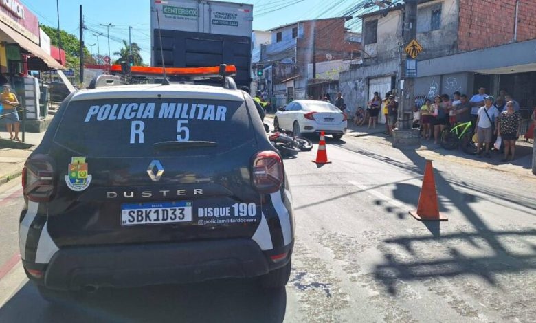 Uma mulher morreu e outras duas pessoas ficaram feridas em uma colisão envolvendo uma motocicleta e um caminhão, ocorrida na tarde desta quarta-feira (12), na avenida Cônego de Castro, no bairro Parque São José, em Fortaleza. A vítima fatal foi identificada como Rejane Maria de Castro Rufino, de 47 anos. Ela havia saído de casa para buscar remédios em uma farmácia pública e voltava para casa no momento do acidente.