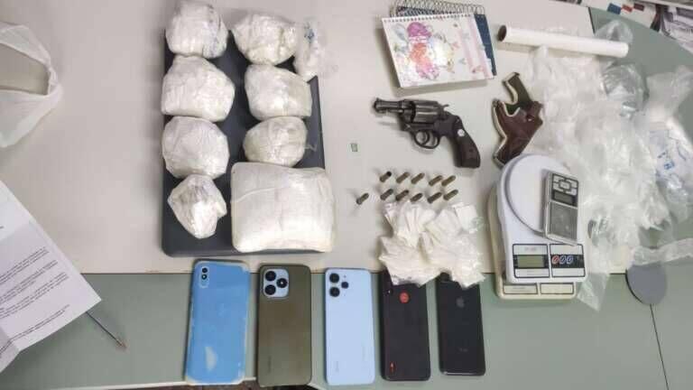 Ao todo, três pessoas foram retiradas de circulação, outros dois mandados de prisão foram cumpridos em unidades prisionais, onde eles já se encontravam recolhidos. Ainda durante o cumprimento dos mandados de prisão, um dos alvos, de 34 anos, estava em posse de 1,747kg de cocaína, bem como um revólver calibre 38 com numeração raspada, além de 10 munições intactas.