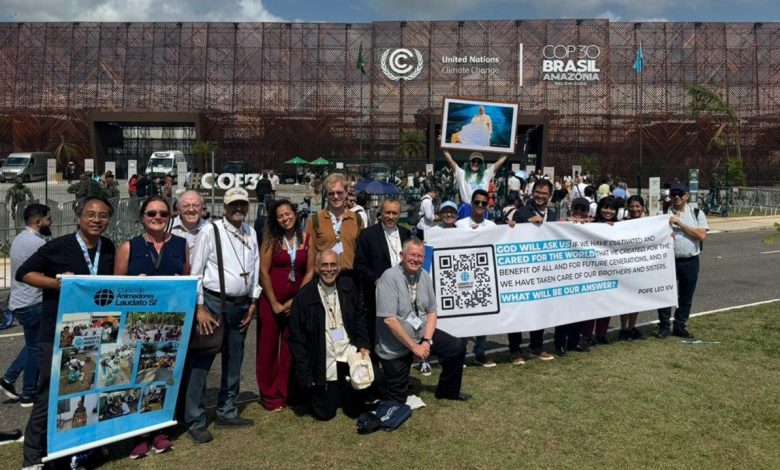 Com mensagem do Papa Leão XIV, jovens católicos realizam ação em frente à “Blue Zone” da COP30 para chamar atenção ao cuidado para com a Casa Comum.