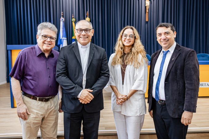 Dr. Antonio Braga Neto, Dom Gregório Paixão,OSB, Pe. Dr. Francisco Junior de Oliveira Marques,e Dr. João Paulo Amâncio Melo. Foto: Sercom / ArqFor ( Laércio Peixoto).