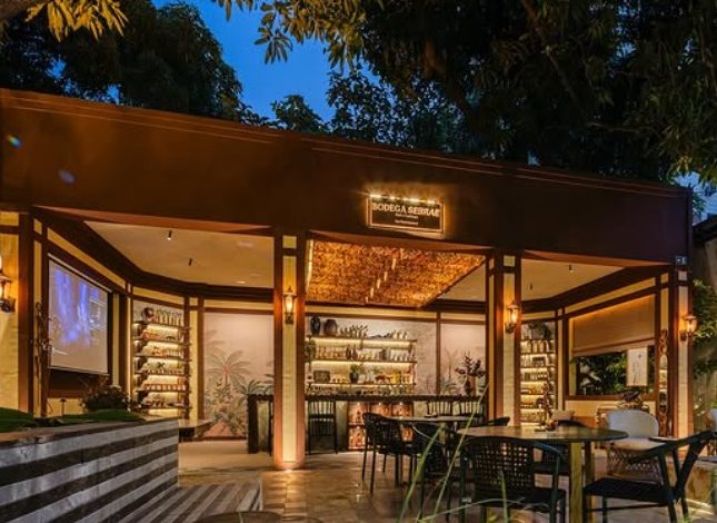 Inspirada nas antigas bodegas que fizeram parte da memória e da cultura cearense, o ambiente projetado pela arquiteta Tìcci Sánford, resgata a tradição com elegância. Cada elemento do ambiente traduz o fortalecimento da economia local promovido pelo Sebrae/CE, desde as cachaças artesanais de Viçosa do Ceará, produção certificada com o Selo de Indicação Geográfica (IG), passando pelo mel da Serra da Ibiapaba até o mobiliário criado por fornecedores regionais.