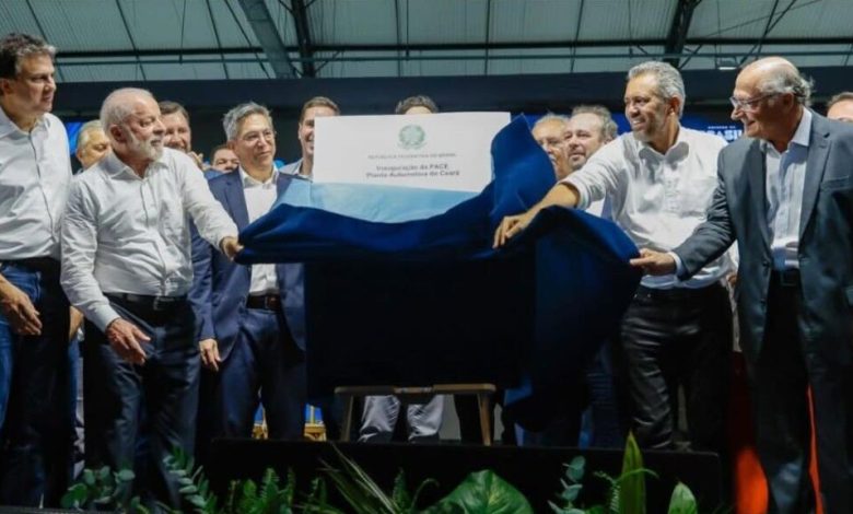 O presidente Lula participou nesta quarta-feira (3) da inauguração do Polo Automotivo do Ceará (PACE), em Horizonte, na Região Metropolitana de Fortaleza (RMF). Ao lado do governador Elmano de Freitas e do ministro da Educação, Camilo Santana, Lula conheceu as instalações do complexo e testou o primeiro modelo do Chevrolet Spark EUV, veículo elétrico que marca o início das atividades da General Motors no Estado.