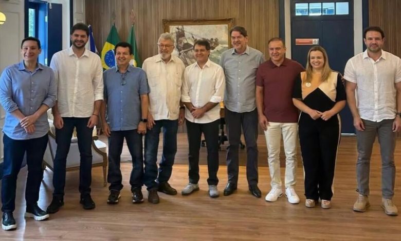 O presidente estadual do PSB no Ceará, Eudoro Santana (PSB), o senador Cid Gomes (PSB), deputados federais e estaduais, além do presidente da Câmara Municipal de Fortaleza (CMFor), vereador Léo Couto (PSB), se reuniram com o prefeito de Fortaleza, Evandro Leitão (PT), nesta terça-feira (15), no Paço Municipal. De acordo com publicação divulgada nas redes sociais do PSB, o encontro teve como objetivo dialogar sobre o desenvolvimento da capital e os rumos das políticas públicas em Fortaleza.