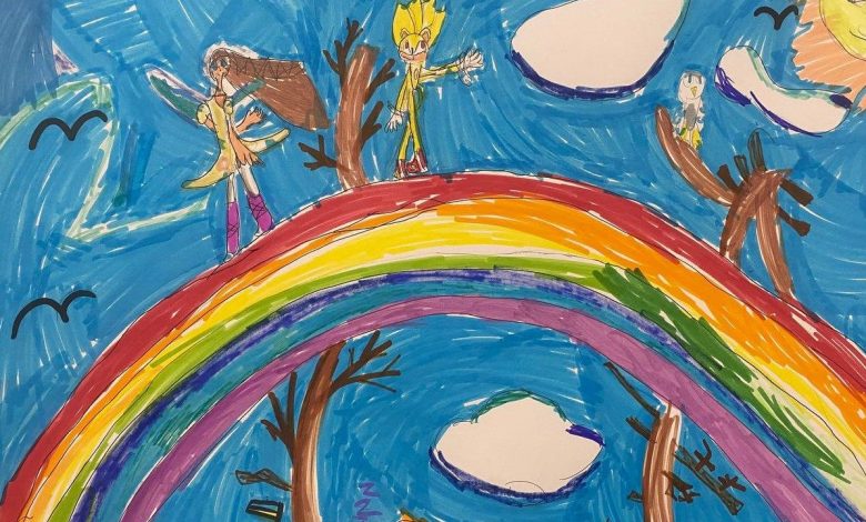 No início da guerra, explica a professora, as crianças desenhavam principalmente temas relacionados à Ucrânia: suas casas, pássaros, a natureza anunciando a primavera e o desejo de paz. Era uma forma de expressar suas emoções, uma verdadeira arteterapia. “Continuamos trabalhando e, assim que possível, retornamos às aulas presenciais. Hoje, algumas crianças participam das atividades na cidade, outras remotamente, on-line.”