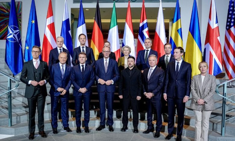 O projeto discutido na capital alemã inclui “fortes garantias de segurança” semelhantes ao Artigo 5 da OTAN, um exército ucraniano de 800.000 soldados e a adesão da Ucrânia à UE, de acordo com a Casa Branca, que afirma que “90% das questões foram resolvidas”. Surge também a proposta de uma “força multinacional” liderada pela Europa e apoiada pelos EUA para defender Kiev. A força “contribuirá para a regeneração das forças armadas ucranianas, a segurança do espaço aéreo ucraniano e a proteção de seus mares, inclusive por meio de operações dentro da Ucrânia”, segundo uma declaração conjunta assinada por Alemanha, França, Reino Unido, Itália, Polônia, Finlândia, Noruega, Suécia, Holanda e os chefes das instituições da UE.