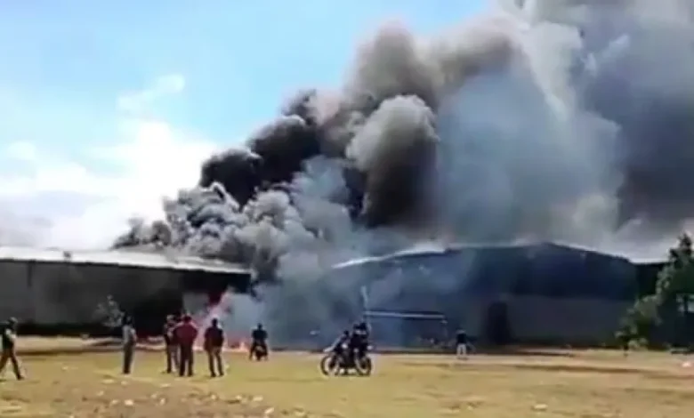 Durante a manobra, o avião atingiu parte de um galpão onde havia combustível armazenado. Com o impacto, a aeronave explodiu e foi tomada pelas chamas.