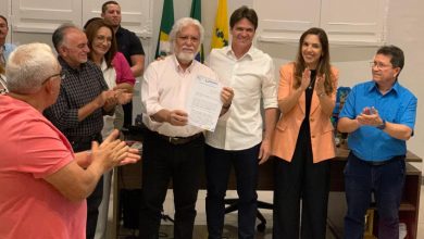 O superintendente do Sebrae/CE recebe das mãos do prefeito de Baturité a Lei que autoriza a doação do terreno à…